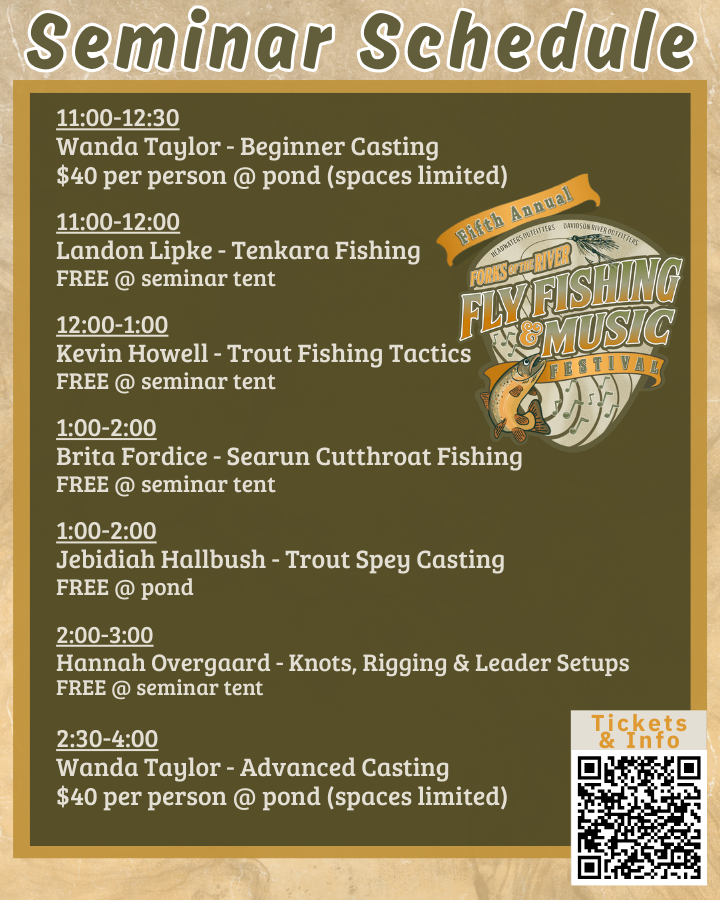 Whether you’re here to learn, listen, dance, fish, or simply soak it all in, this weekend is about connection—to the river, to the music, and to the people who make this community special. Join us for one night or the whole weekend and be part of a celebration that brings fly fishing culture to life.