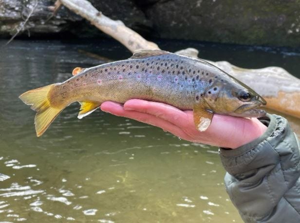 The big winner in late February was the dry fly fishing. Quill Gordons, blue quills and BWO’s started hatching every day. Walter and I were able to make several trips to the Davidson River. The hatches were coming off pretty regularly and we had found a large brown rising at the head of a pool. Walter and I were both able to get a nice trout to rise to a fly, but didn’t seal the deal on the set. However, we both connected on some nice trout.