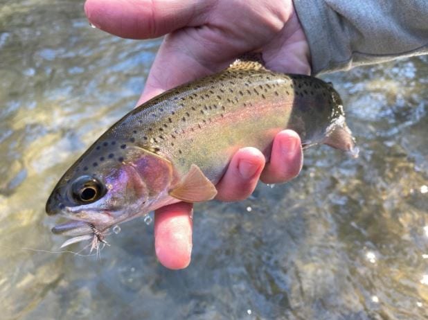 Chris was able to take advantage of the weather. He was able to hook some rising trout with stone flies on the East Fork. The splashy rises are sure give away to stone flies this time of the year. Usually, it will be one of the Little Brown Stones. When the water rose, he connected on a big brown using streamers.