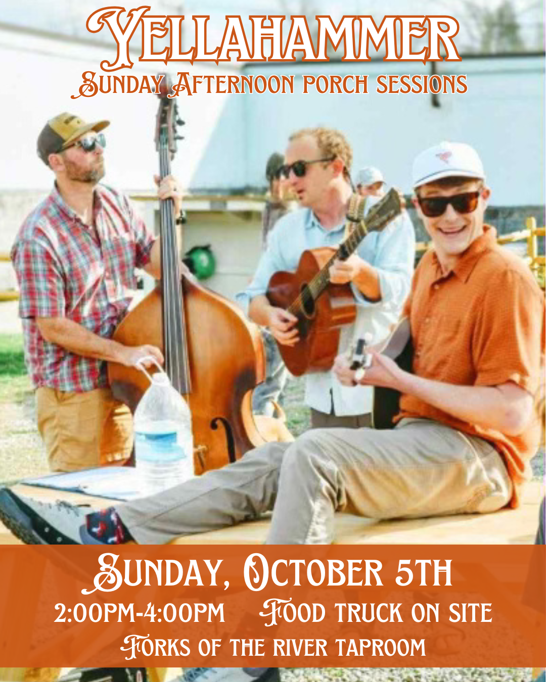 Forks of the River Taproom 25 Parkway Road, Rosman, NC, United StatesWe are thrilled to announce that there will be live music this Sunday, October 5th! Join us to enjoy Yellahammer, a band featuring Ethan Talley, Dan Woodall, and Clay Wooldridge, performing from 2 to 4 PM. Additionally, Levi’s Lunchbox will be open, serving delicious food! 🍻🎶