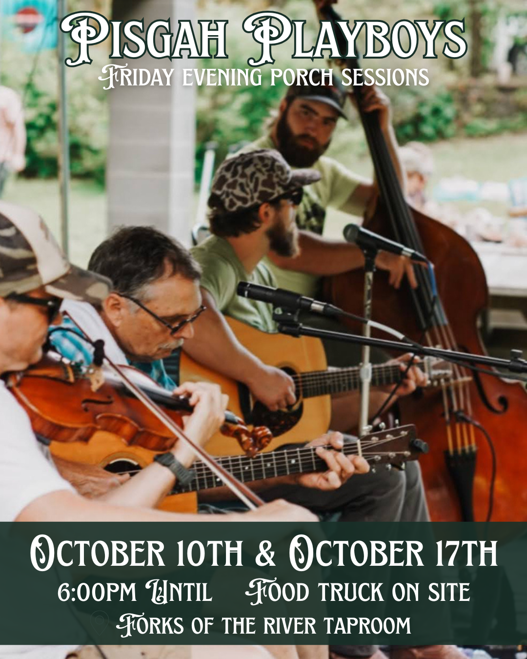 Forks of the River Taproom 25 Parkway Road, Rosman, NC, United StatesFriday Evening Porch Sessions are back! This week we welcome Pisgah Playboys to the porch from 6–8pm. Grab a seat, enjoy good food from Levi’s Lunchbox, and kick off your weekend with live music by the river. This is a group of musicians seasoned harder than shagbark hickory. Whittling away at the boundaries between western […]