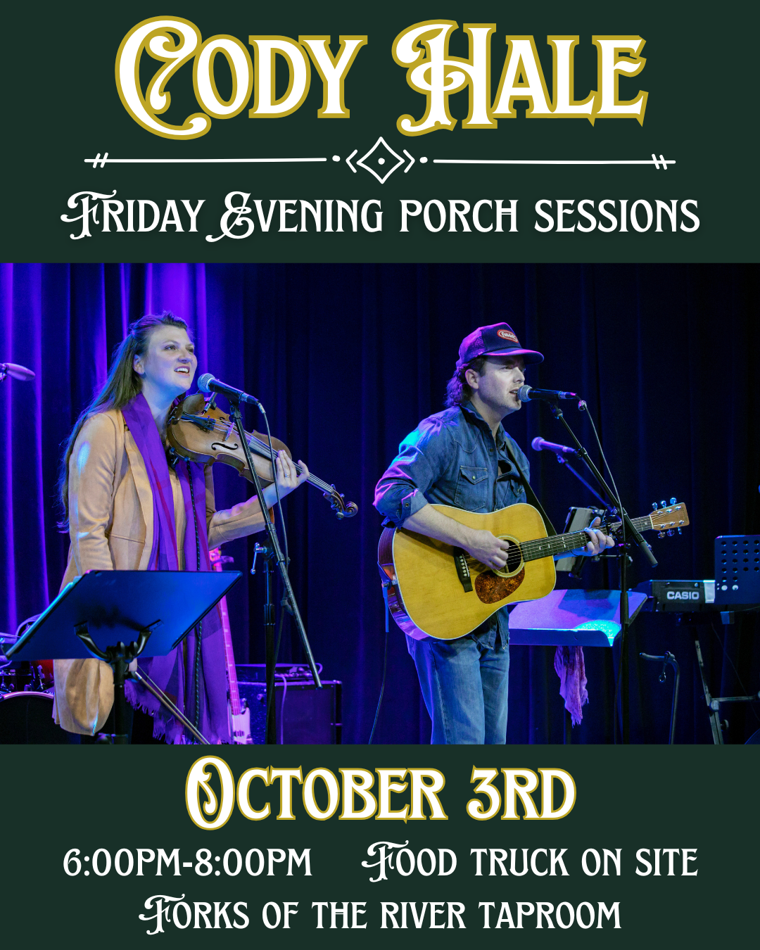 Forks of the River Taproom 25 Parkway Road, Rosman, NC, United StatesFriday Evening Porch Sessions are back! This week we welcome singer/songwriter Cody Hale to the porch from 6–8pm. Grab a seat, enjoy good food from Levi's Lunchbox, and kick off your weekend with live country music by the river.