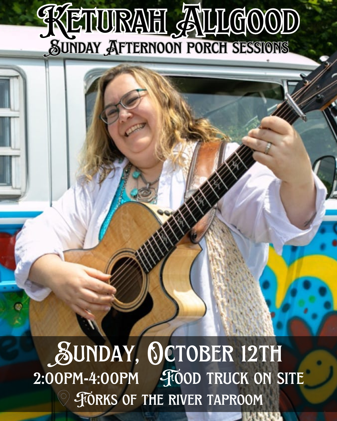Forks of the River Taproom 25 Parkway Road, Rosman, NC, United StatesThis week, we’re thrilled to welcome one of our local favorites and dear friend, Keturah Allgood. She’ll be gracing the porch with her acoustic singer-songwriter talent from 2–4 PM. Grab a seat, savor delicious food from Levi’s Lunchbox, and kick off your weekend with live music by the river. Join us for an unforgettable evening!
