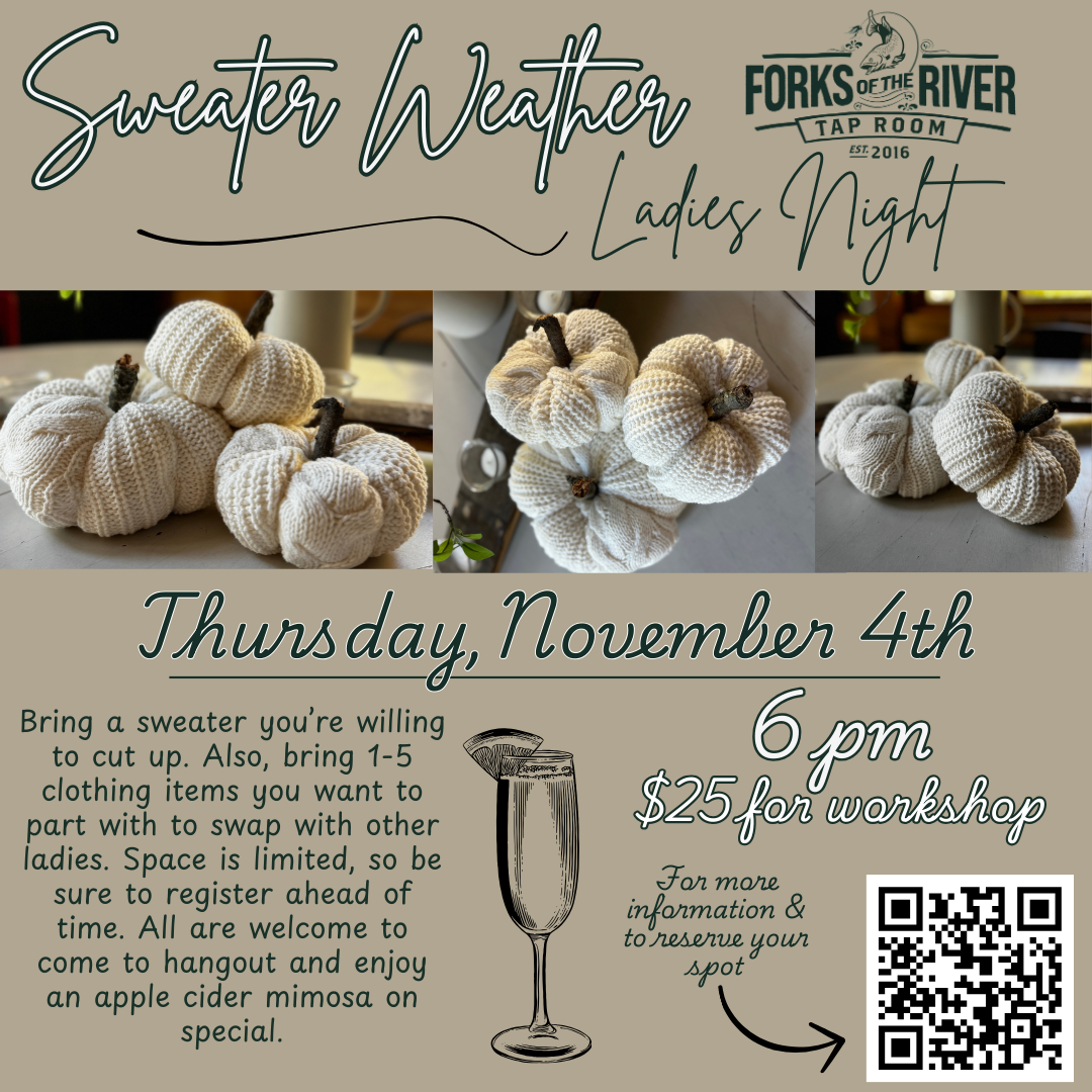Forks of the River Taproom 25 Parkway Road, Rosman, NC, United StatesJoin us for a fun fall-themed ladies' night! Ashley Bartol will guide you through a sweater pumpkin craft for you to use as a decoration. Please bring a sweater you are willing to cut up. Ashley will provide the rest and she does have a few spare sweaters if you need one. We are also […]